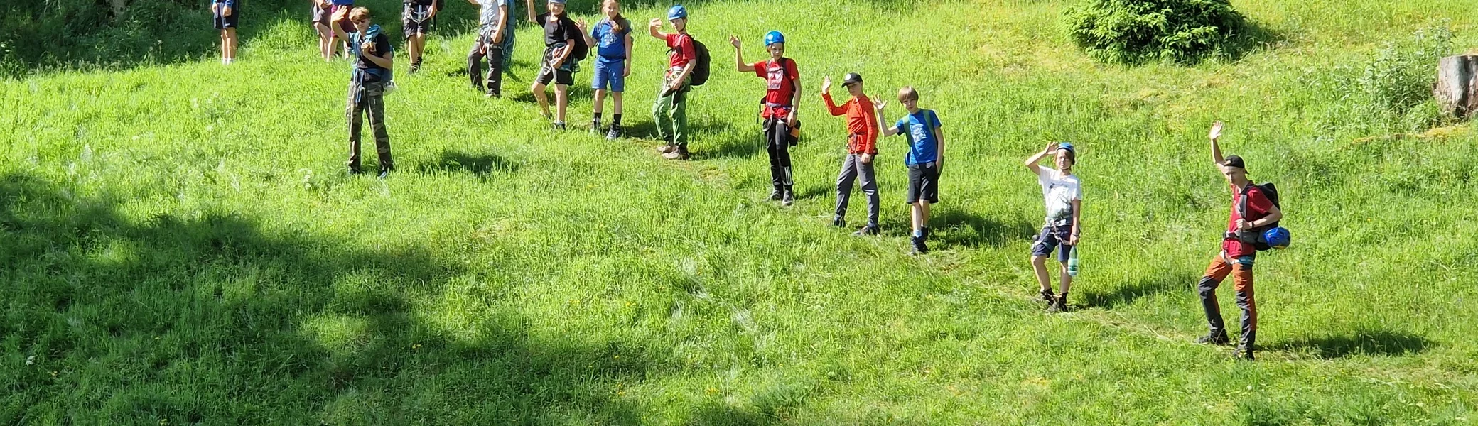 Tag 2: Guten Morgen! Bei strahlendem Sonnenschein gab es erstmal ein gesundes Frühstück und wir besprachen den Tag. Ein Highlight nach dem anderen sollte auf uns treffen. Die erste Aktion: die Grundlagen der Flying-Fox aufzubauen. Danach ging es an den Falkenstein zum Klettern. Luca und Yannick als erfahrenste Kletterer übten mit einigen Kids Mehrseillängen klettern für die „Alpen-Gruppe“. Das machte ganz schön hungrig. Nach dem Mittag spannten wir die Flying-Fox und hatten alle einen riesigen Spaß. Darauf sind wir wieder klettern gegangen und Hans und Emily durften mit Luca das Mehrseillängen klettern ausprobieren. Die Sonne ging schon langsam unter, als wir in die Unterkunft zurückkehrten und uns das Abendessen schmecken ließen. Geschafft und happy fielen alle in die Koje.
